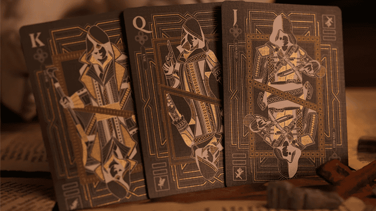 Conçu pour les joueurs exigeants, ce jeu possède un dos de carte réversible. Quelle que soit la façon dont vous tenez vos cartes, le design symétrique, réalisé par dorure à froid, reste parfaitement aligné, révélant l’insigne caché des Assassins et des motifs historiques.