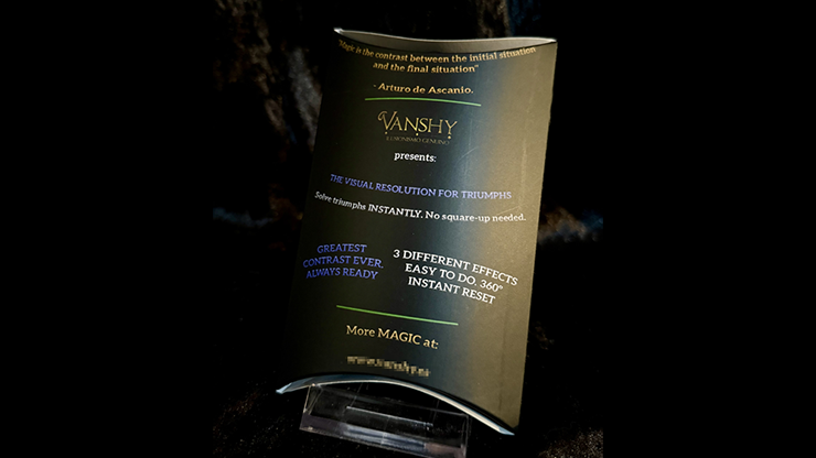 « La magie réside dans le contraste entre la situation initiale et la situation finale. » – Arturo de Ascanio. CONTRASTE est la toute première résolution VISUELLE et INSTANTANÉE d’un TRIOMPHE. Créez différents effets visuels avec un seul accessoire. Conçu pour le monde réel, il s’utilise dans toutes les situations : close-up, cocktail, salon, rue ou même sur scène. Ce n’est pas qu’un simple tour, c’est un outil. Et il est très facile à utiliser. Explorez ses possibilités avec votre triomphe préféré. Vous pouvez même l’utiliser sur un jeu emprunté, ce qui permet de vérifier et de mélanger le jeu avant et après l’effet. Enfin disponible en ROUGE, avec un design différent de la version BLEUE, vous pouvez ainsi les utiliser simultanément. Quantités limitées. À ne pas manquer ! PROCUREZ-VOUS LE VÔTRE DÈS MAINTENANT !