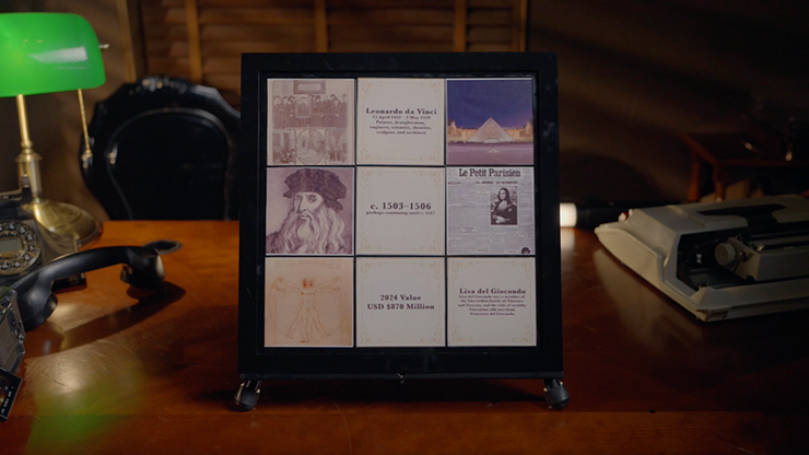 En plus de la Joconde, The Grid System permet une présentation façon 3-en-ligne, révélant un message personnalisé :