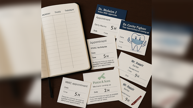 « Jamais en retard » de Damien Vappereau et Marc Céliandre est un numéro de mentalisme unique et divertissant où un spectateur vous aide à retrouver l’heure exacte d’un rendez-vous complètement oublié. Grâce à des cartes de visite spéciales et une séquence époustouflante, vous dévoilez l’information avec une précision stupéfiante ! Plein de rires et de surprises, ce numéro repose sur l’interaction et le suspense, laissant le public sans voix. L’effet est instantané, captivant et totalement inexplicable. Idéal pour dynamiser n’importe quelle performance et captiver votre public, « Jamais en retard » prouve que même avec une mémoire défaillante, il est toujours possible d’être parfaitement à l’heure !