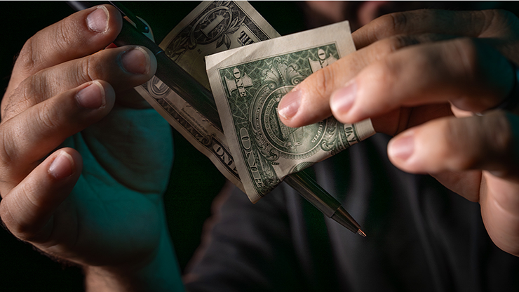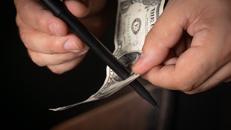Vous empruntez un billet à quelqu’un et, d’un mouvement rapide, vous poussez visuellement un stylo à travers.