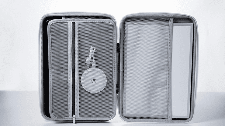 L’étui de transport PITATA dispose de deux grands compartiments, parfaits pour ranger des appareils plus volumineux comme le tableau blanc interactif et le bloc-notes PITATA. Au centre, vous trouverez un panneau de rangement multifonctionnel double face :