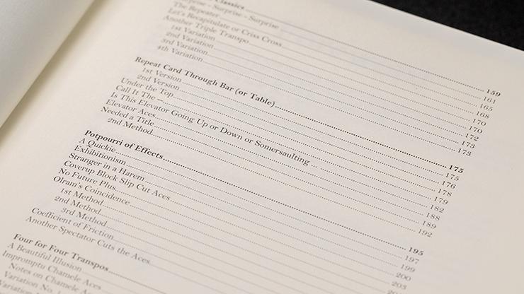 Ed Marlo a créé tellement de tours de magie qu’au sommet de sa carrière, il peinait à les faire publier. Sur les conseils de David Solomon, il a donc imprimé et produit lui-même quelques exemplaires de ses manuscrits, qui ont circulé discrètement parmi les magiciens de cartes confirmés. Des décennies plus tard, ces « manuscrits privés » sont devenus des ouvrages parmi les plus recherchés et les plus influents de la magie des cartes moderne. Le premier et le plus remarquable d’entre eux est *The Unexpected Card Book*. Il présente un recueil dense et varié de plus de 80 tours et manipulations, couvrant de multiples scénarios et niveaux de difficulté. Il ne s’agit pas simplement de tours à expérimenter pendant l’entraînement, mais de nombreuses idées directes et pratiques qui restent modernes plus d’un demi-siècle après leur parution. À l’intérieur, vous trouverez onze chapitres abordant un large éventail de sujets, allant du mélange de cartes à la main, aux effets préparés, aux contrôles et aux classiques revisités, jusqu’à des concepts plus ésotériques comme les routines de l’horloge, les systèmes de faro, et bien plus encore.
